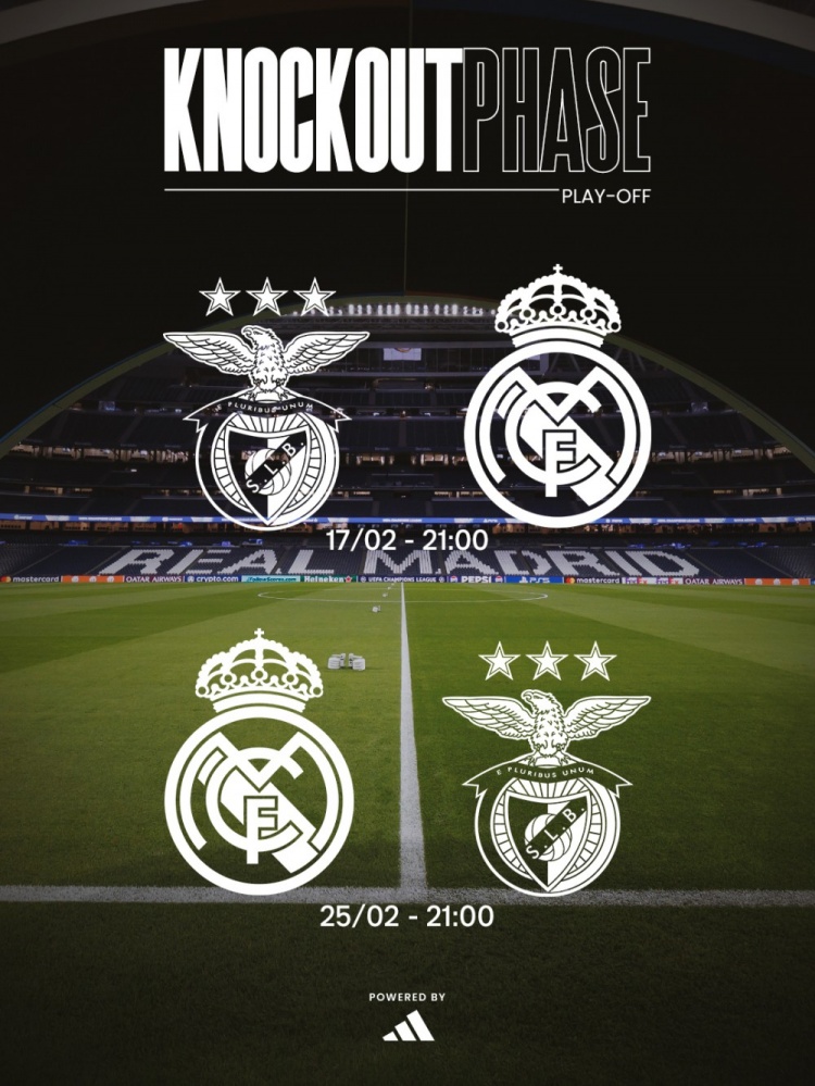 1月31日讯 皇马官方更新社媒动态,确认了对阵本菲卡欧冠附加赛两局 赛事 的时间。